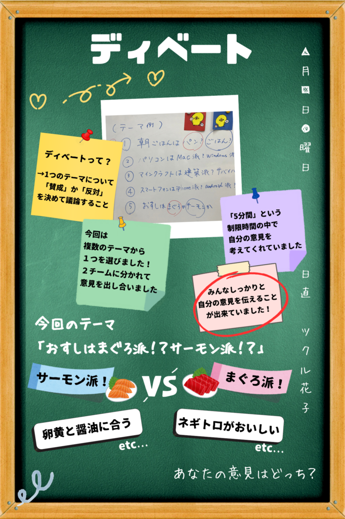 今回は集団活動の時間に行った『ディベート』の様子を紹介します。