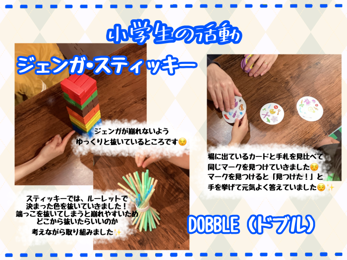ジェンガ・スティッキーや、DOBBLEなどに取り組みました☆