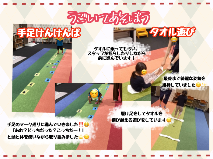 手足けんけんぱや、タオルを使った遊びなどを行いました☆
