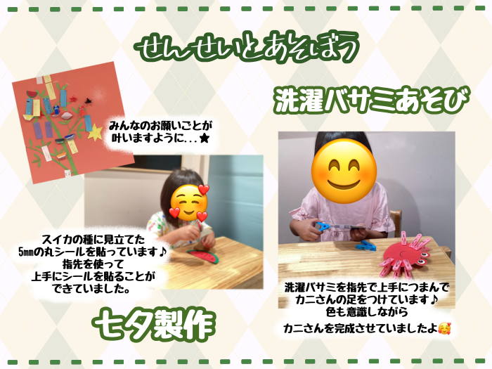 個別の活動では季節の製作や洗濯バサミの遊びに取り組んでいます。