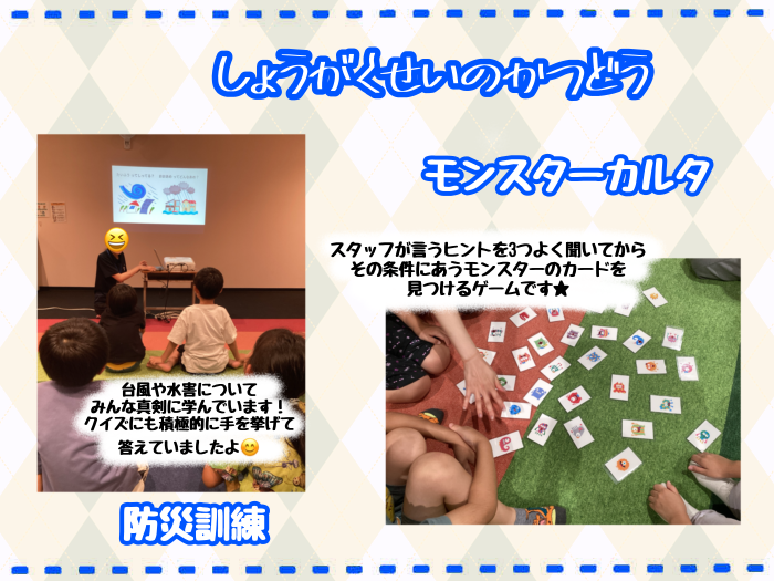 モンスターカルタでは他児童と一緒に楽しく参加する様子がみられました♪