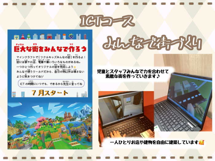 ICTの活動ではマインクラフトの街づくりに取り組んでいます。
