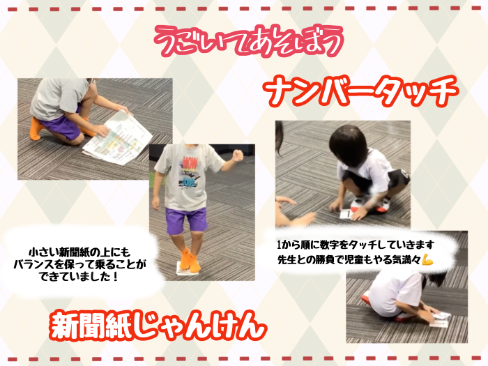 新聞紙じゃんけんやナンバータッチで先生と勝負し児童も負けじとやる気満々に活動に取り組んでいました!