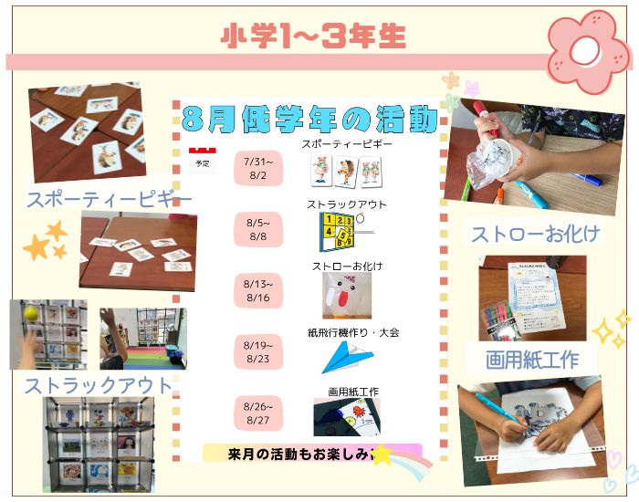 8月に取り組んだ低学年と高学年の活動の紹介です(๑>◡<๑)