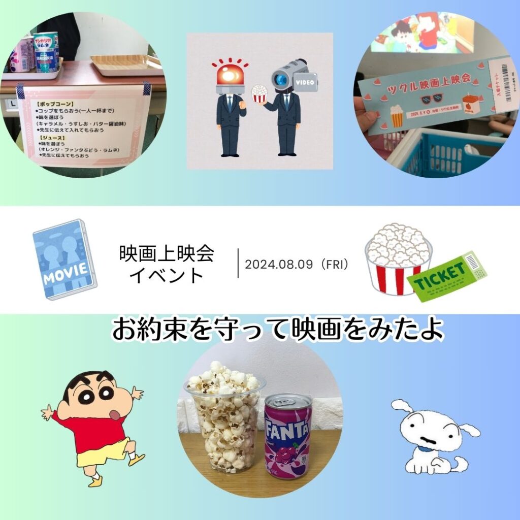 ポップコーンとジュースを準備して、映画鑑賞を行いました。ルールを守って、みんなで楽しく鑑賞しました⭐️