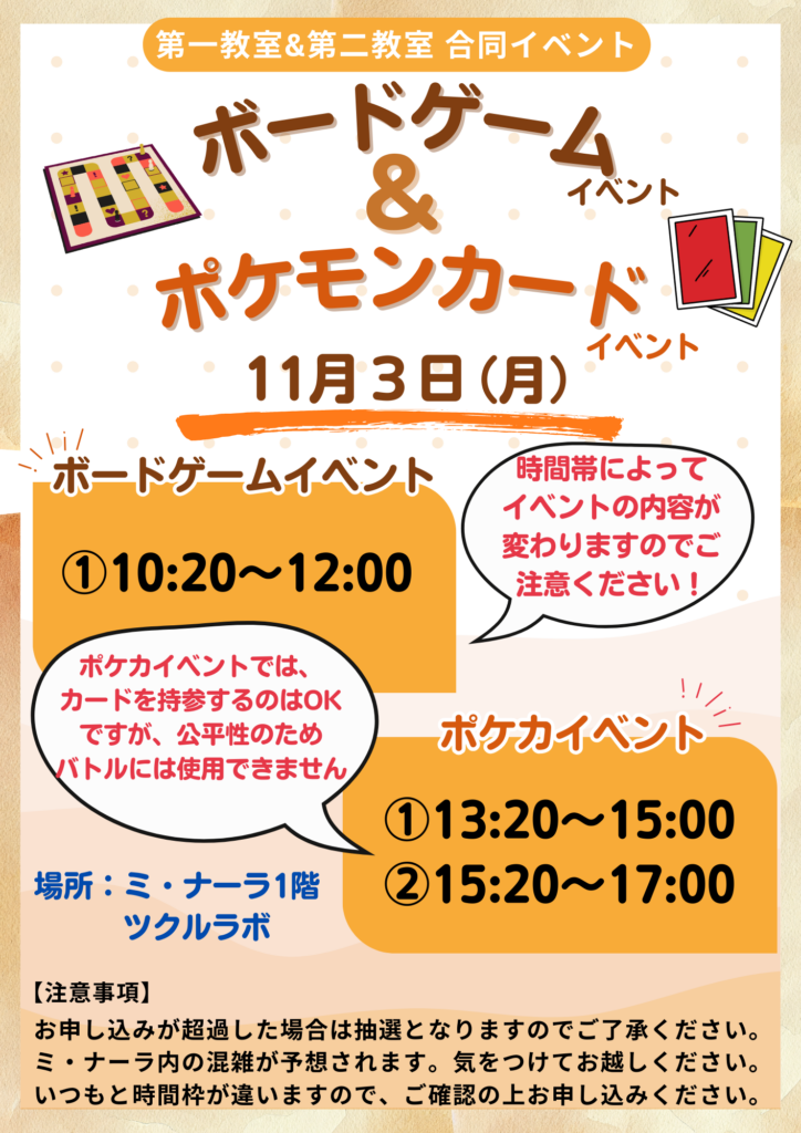 11月3日、24日どちらも第一教室&第二教室合同で行います。