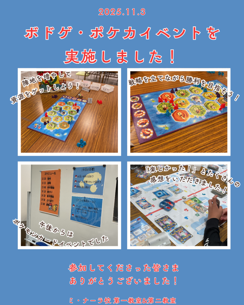 11月3日にボードゲーム・ポケモンカードイベントを開催しました!
