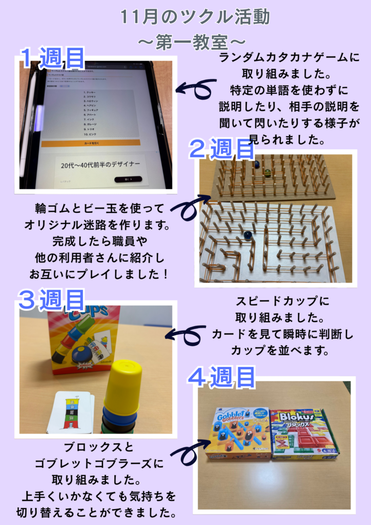 11月⭐️ツクル ミ・ナーラ第一・第二教室活動報告