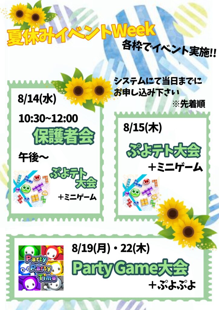 8月のイベントをお知らせいたします。