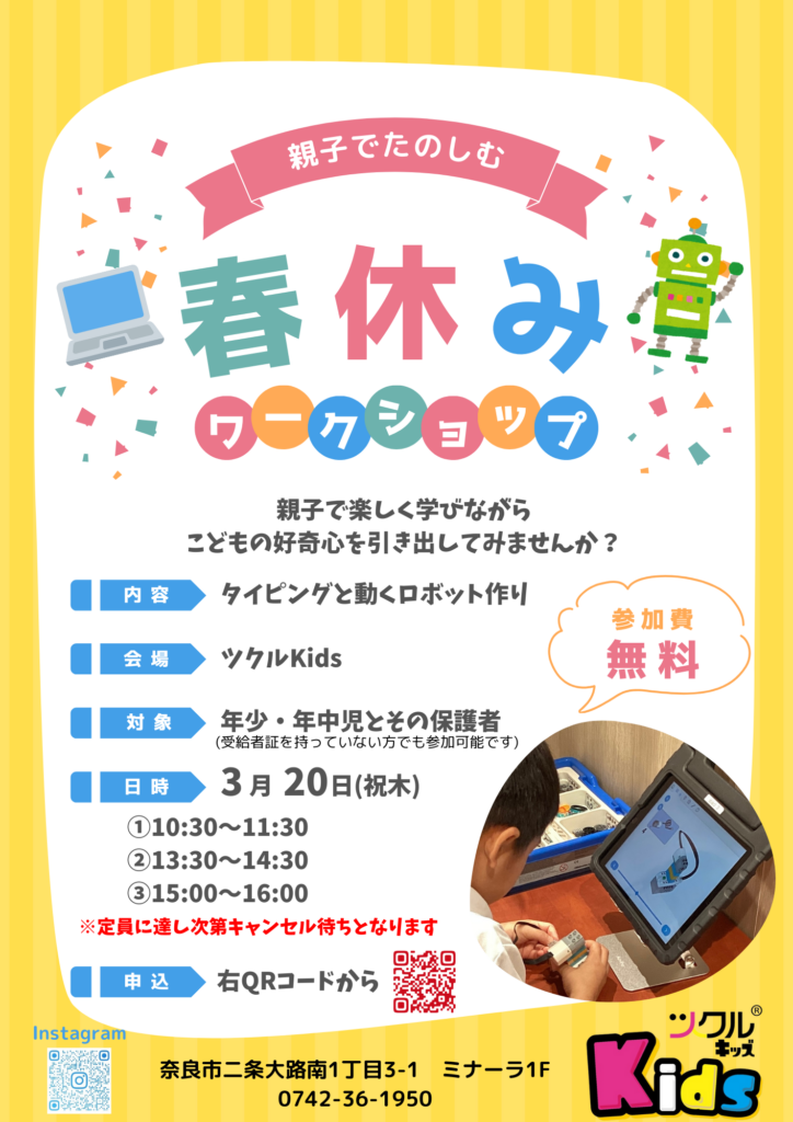 ※ツクルKidsに在籍児童の方は3月27日に開催予定です。