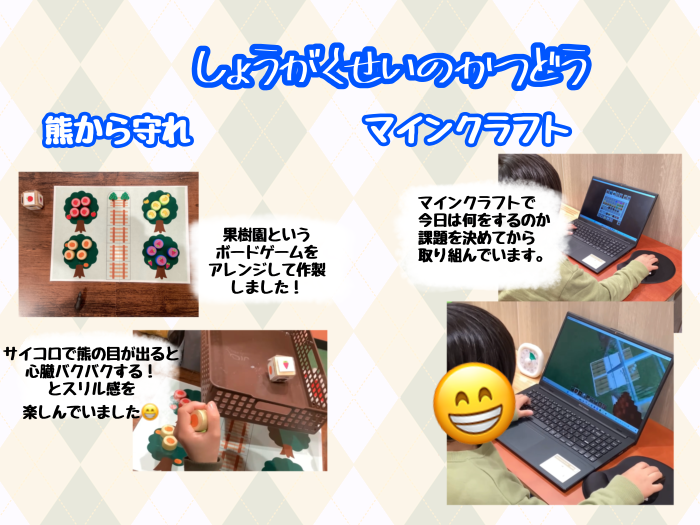 ツクル活動では児童やスタッフとコミュニケーションをとりながら、ボードゲーム等に取り組んでいます。